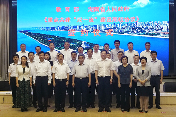 本网讯(记者 蔡颂 张永涛)9月19日下午,从省政府传来喜讯:教育部与省政府签署《重点共建湖南“双一流”建设高校协议》,决定共建中南大学、湖南大学和湖南师范大学等3所在湘一流大学和一流学科建设高校。这是我校进入“211工程”重点建设大学和“双一流”建设高校行列之后的又一个新的里程碑,具有重大历史意义。