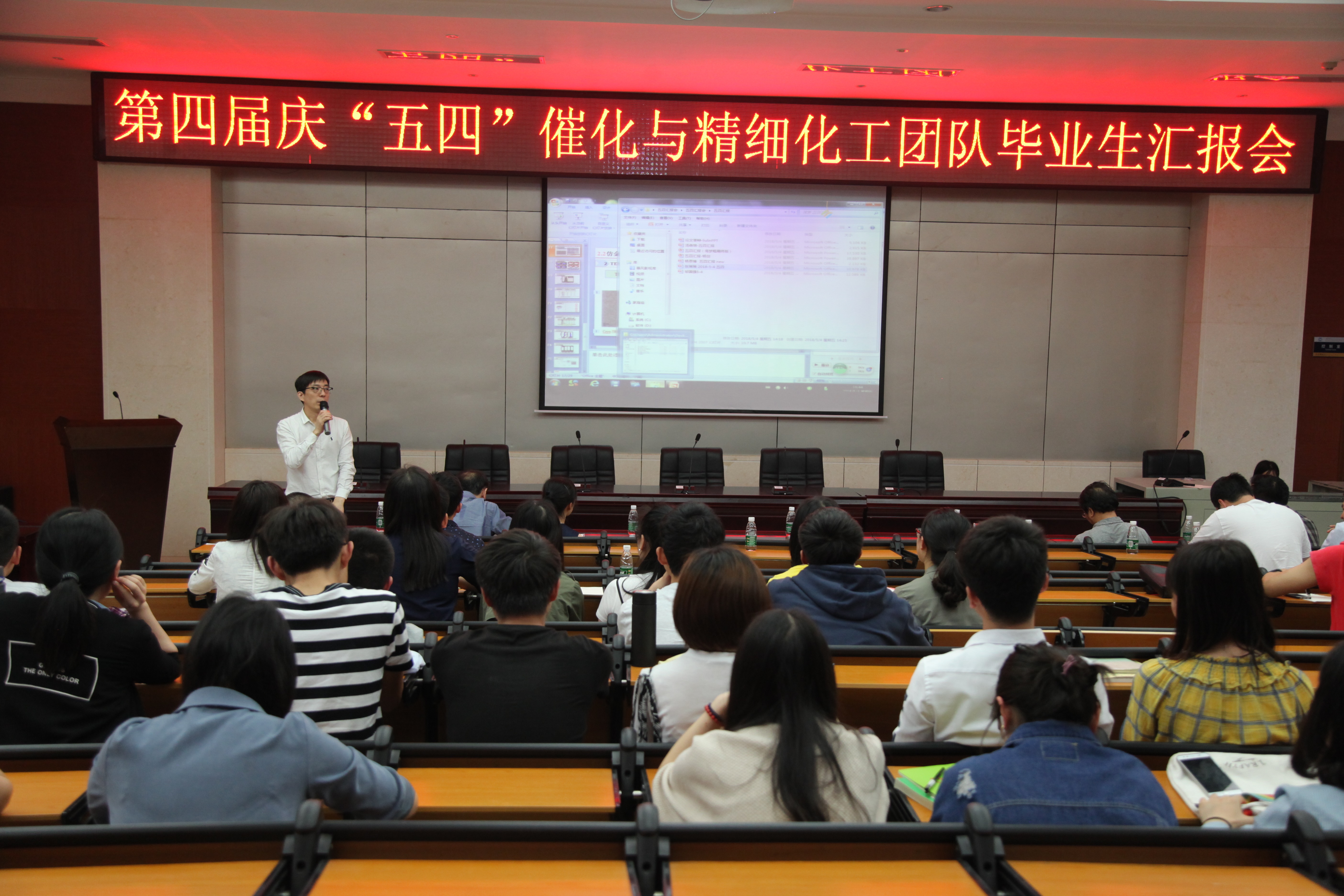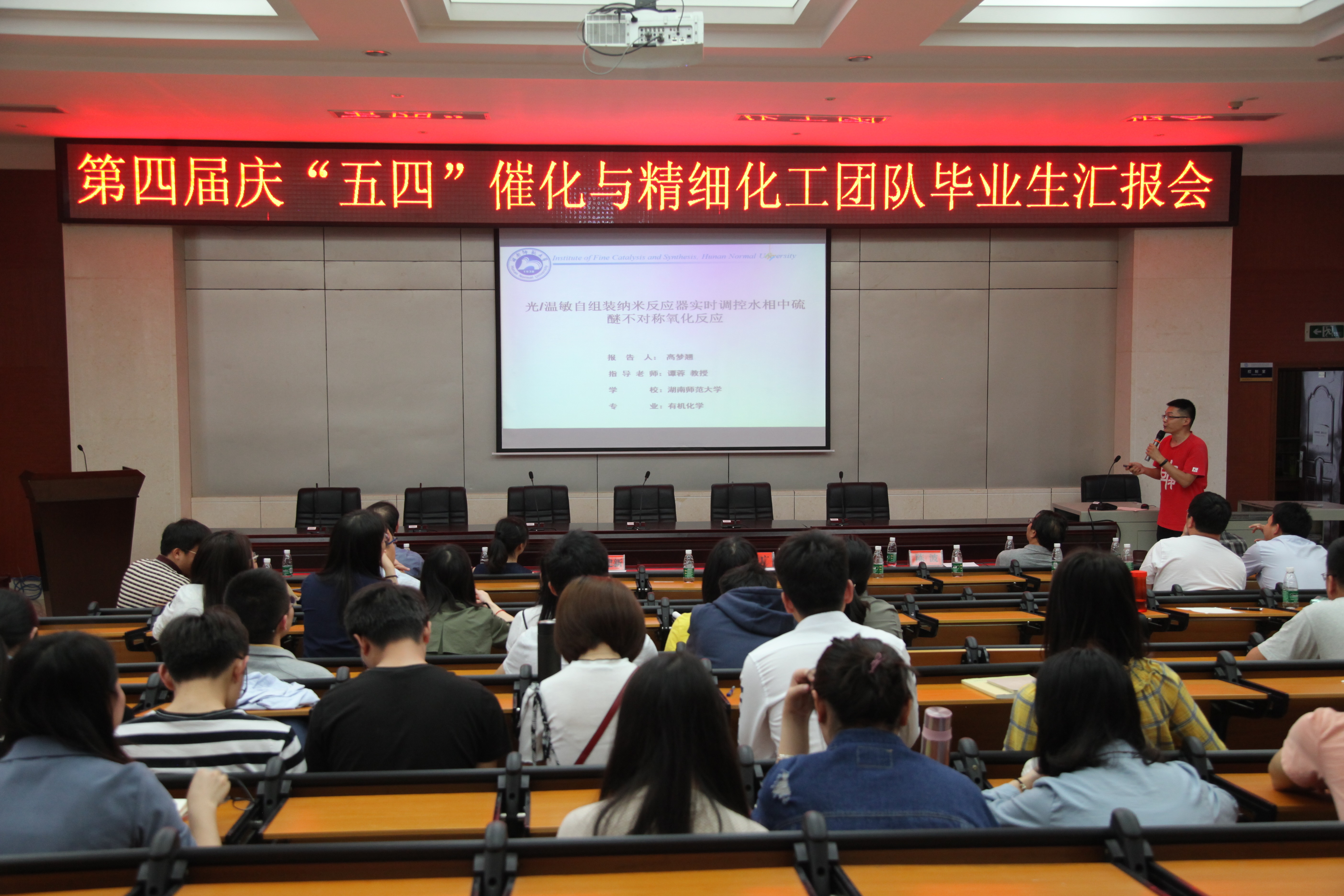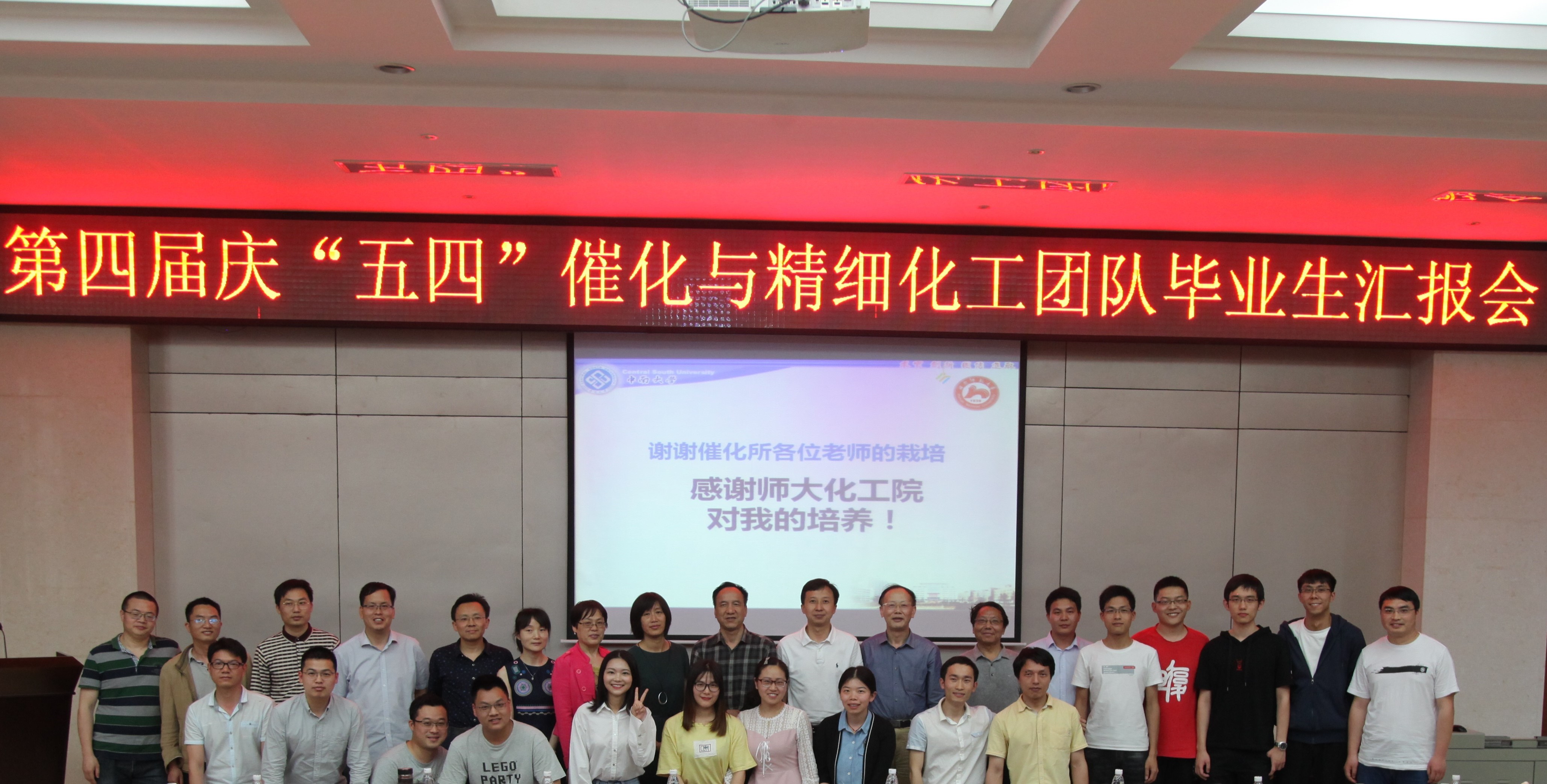 本网讯 (通讯员赖金花)5月4日下午,第四届庆“五四”催化与精细化工团队毕业生汇报会在化工院新楼学术报告厅顺利举行。湖南师范大学研究生院副院长许广,化学化工学院副院长宋建新、科研办主任李羽珍和催化与精细化工团队全体老师出席此次活动。