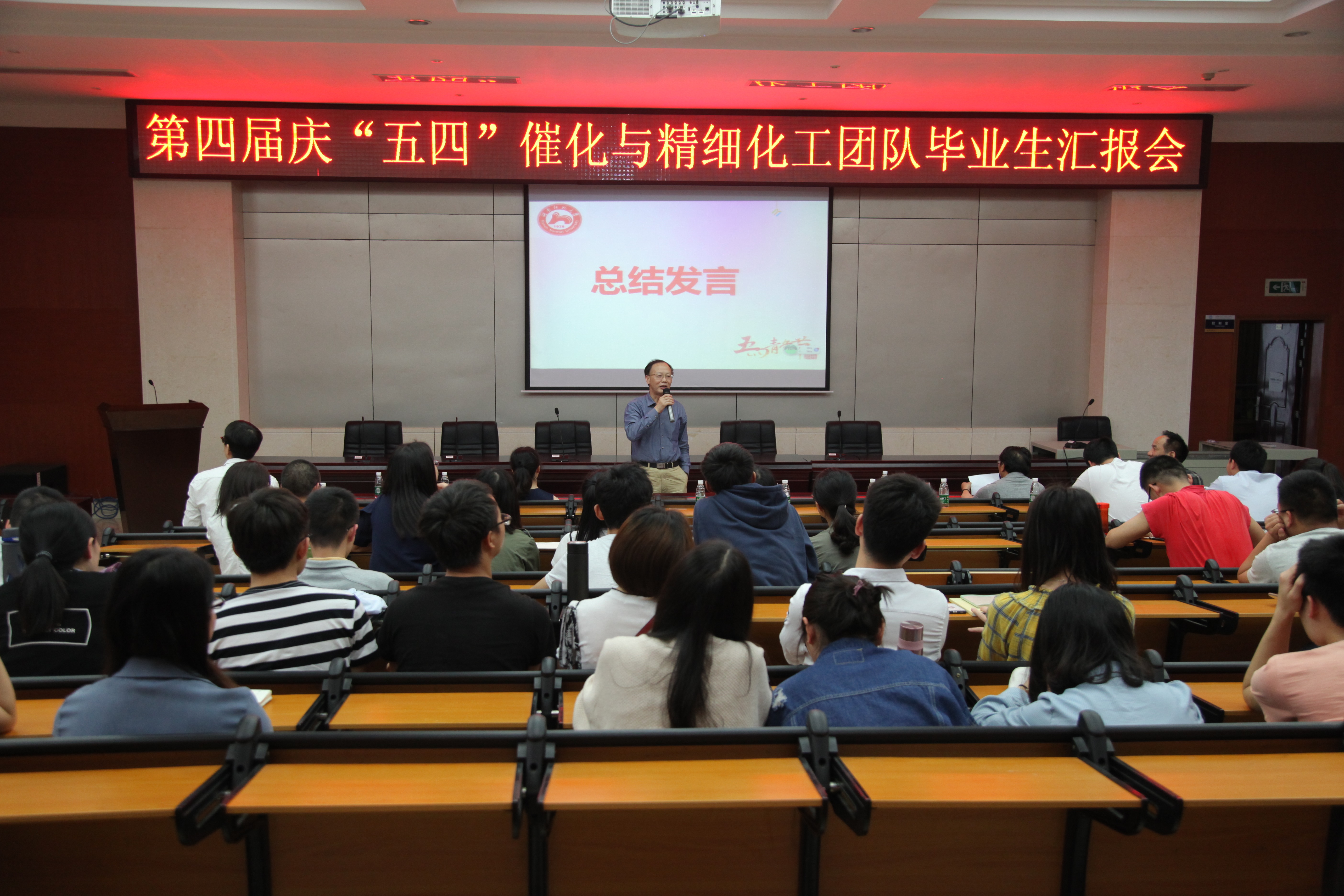 催化与精细化工团队负责人伏再辉教授致开幕辞,他回顾历届汇报会,充分肯定该活动的意义,为优秀毕业生提供展示成果的平台,同时激励在校生奋发图强、多创成果,最后预祝本次汇报会取得成功。