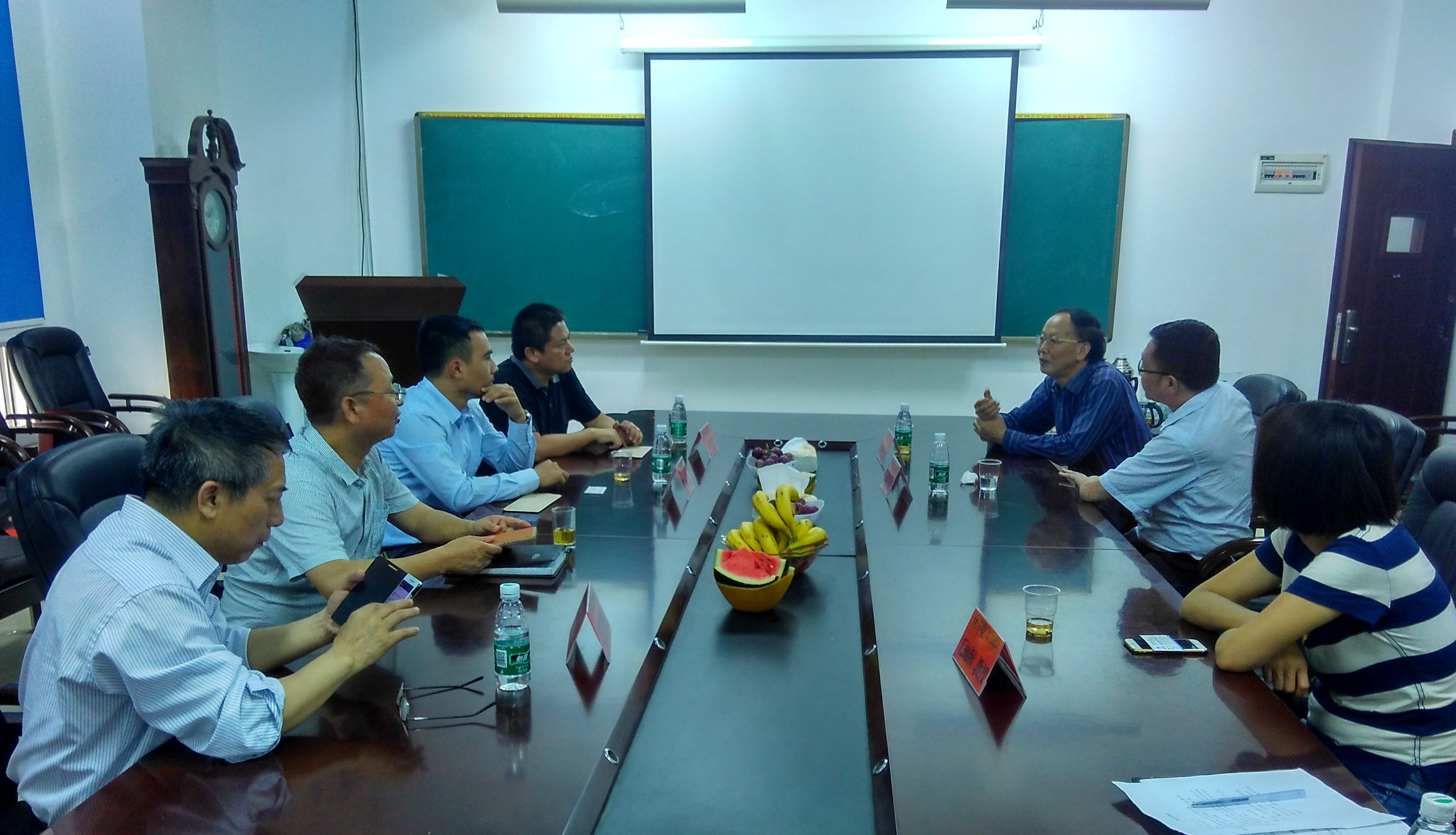 本网讯 5月12日,深圳市泰塑塑化材料科技有限公司总经理李军桦一行访问石化新材料与资源精细利用国家地方联合工程实验室。双方在化学化工学院206会议室举行项目合作交流会。南京越升挤出机械有限公司经理陈燕飞,株洲时代新材料科技股份有限公司总工程师邓凯桓,化学化工学院院长陈波,工程实验室主任尹笃林、常务副主任毛丽秋、副主任苏胜培等出席座谈会。