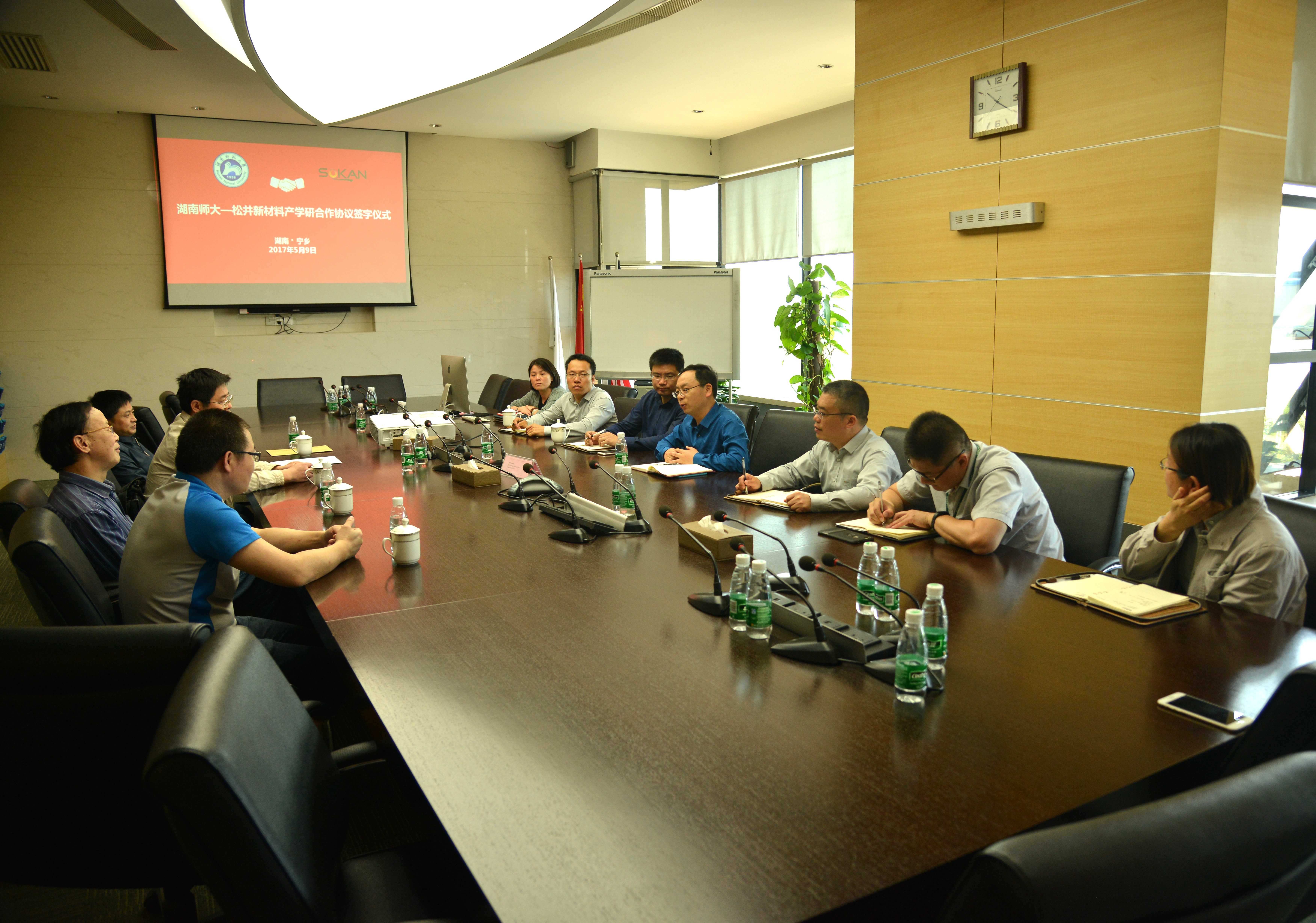 王卫国说,松井新材料公司与我校合作感情基础渊远流长,松井新材作为国家高新技术企业,科技部技术创新基金重点扶持企业一直秉承认真专注的企业精神,渴望能与高校携手,努力打造企业各种竞争实力,努力成为全球高端消费品涂料领域的领导者。湖南师范大学石化新材料与资源精细利用国家地方联合工程实验室兰支利教授多年来在涂料研发领域所获得的成就及在校企产学研合作上所积累的宝贵经验为松井与师大的合作提供了坚实的基础。他希望通过与我校的产学研合作,共同研发高端消费品涂料新品种,双方共同致力于耐污耐磨高端涂料的新突破。