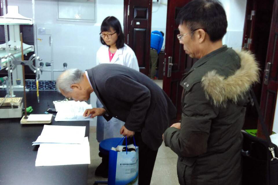 讲座结束后,陈六平对实验室进行了实地考察,他对我校化学实验教学工作提出了改进意见,并对我校国家级化学实验教学示范中心的建设和规划进行了指导。