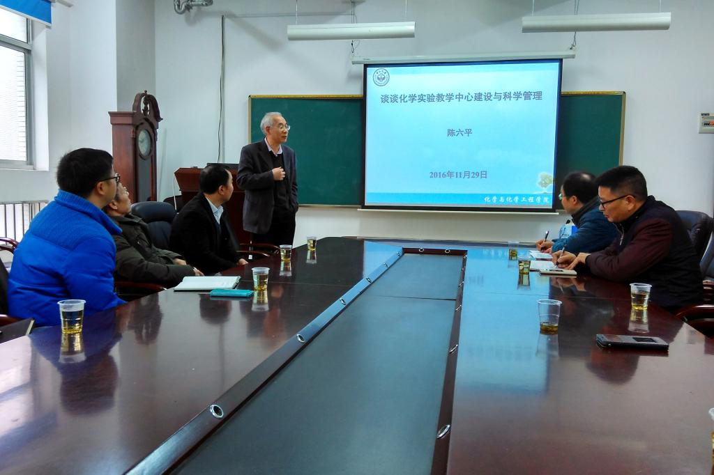 (通讯员 刘贤响)11月29日,应我校国家级化学实验教学示范中心的邀请,实验室管理专家、中山大学陈六平教授来我校指导化学实验室的建设和管理工作,并作了题为“谈谈化学实验教学中心建设与科学管理”的专题讲座。讲座由我校化学化工学院副院长谭亮主持。