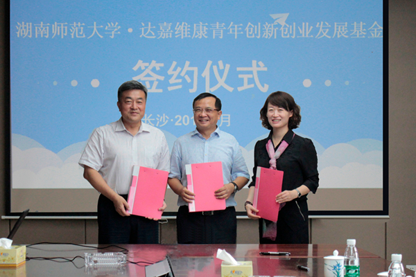 达嘉维康医药集团公司此次共捐赠100万元用于设立“达嘉维康”青年创新创业发展基金,从2016年开始分5年颁发。基金将主要用于资助或直接投资我校青年学生的创新创业项目、扶持青年教师创新创业工作室建设、奖励在创新创业方面取得优异成绩的青年学生和为学校创新创业做出卓越贡献的教职工。该公司自2013年起在我校化学化工学院设立“达嘉维康奖学金”,每年5万元,用于奖励品学兼优的本科生;同时,每年捐赠5万元用于该学院离退休教职工开展活动。
