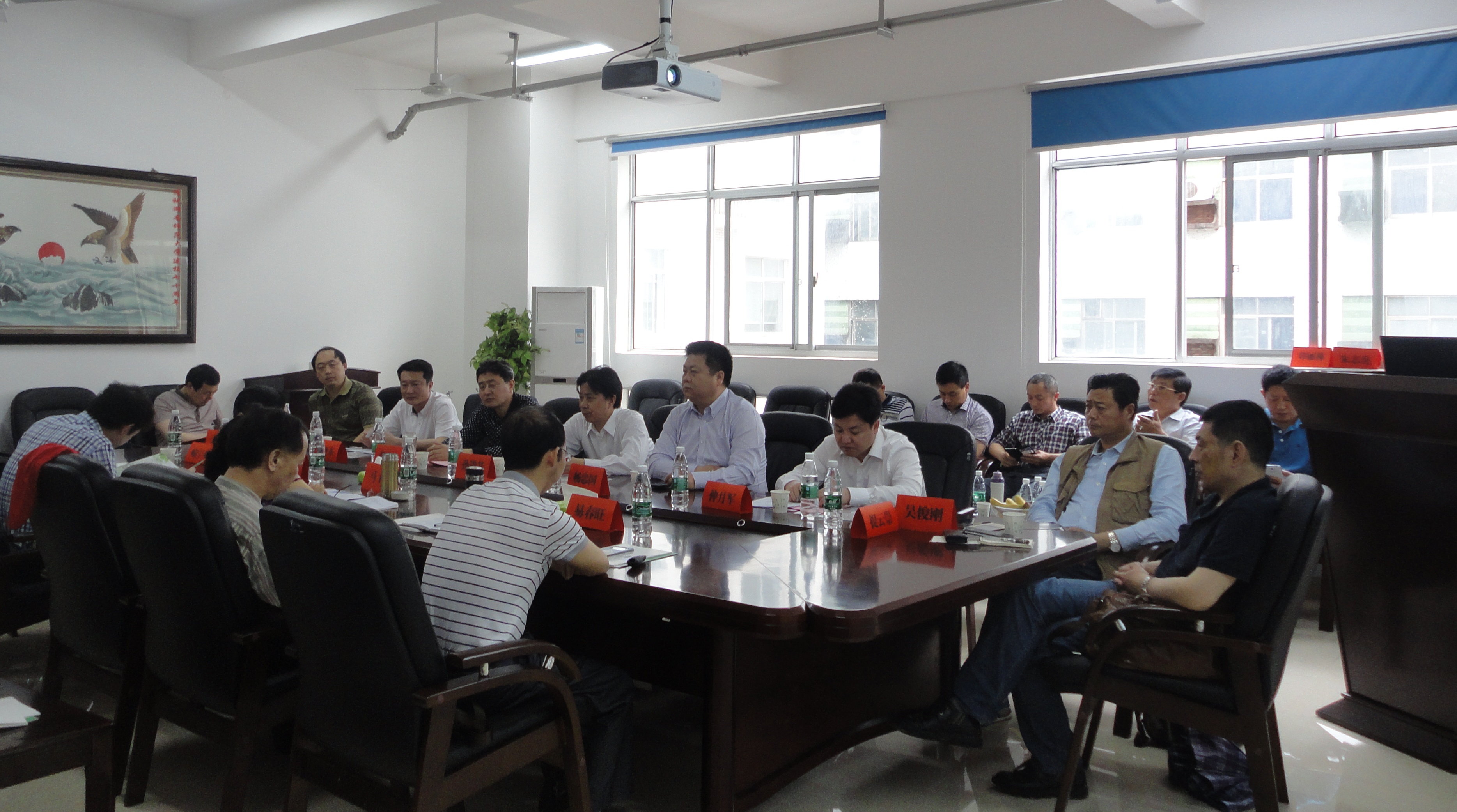 蔡炳华对孙进基一行来校洽谈合作表示热烈欢迎并向客人介绍了我校科研平台及人才优势。马铭和尹笃林分别介绍了化学化工学院的人才和技术优势以及产学研平台建设相关经验,并将海安比作雄狮,预示海安县与湖南师范大学的产学研合作将为海安县的发展注入强大的力量。