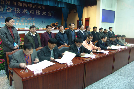 会上,23家企业和我校专家教授凌宇、尹笃林、徐满才、廉世勋、陈作红、周琼、韩广、莫湘涛、刘如石、刘建兵等签订了合作意向书,这些项目都是湘西州政府部门和企业亟待攻克的高新技术课题。