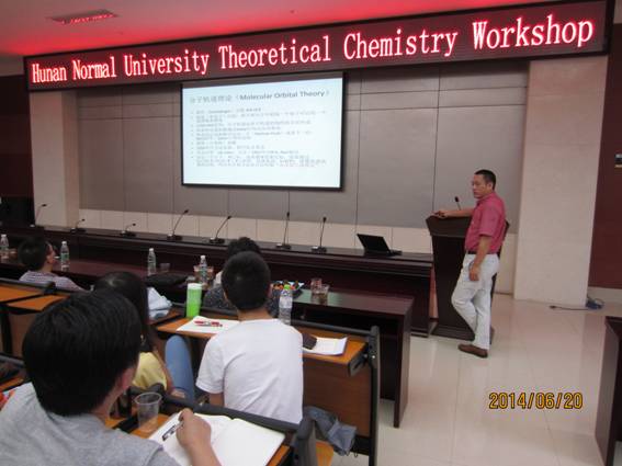 本网讯(通讯员荣春英)6月20日,理论化学研讨会(Theoritical Chemistry Workshop)系列讲座在我院新楼2楼报告厅举行。5位资深研究者受邀做客我院进行学术交流并参加理论化学研讨会。此次理论化学研讨会系列报告吸引了我院不同专业领域的科研骨干和研究生参会,研讨会由我院副院长、兼博士生导师肖小明教授主持。